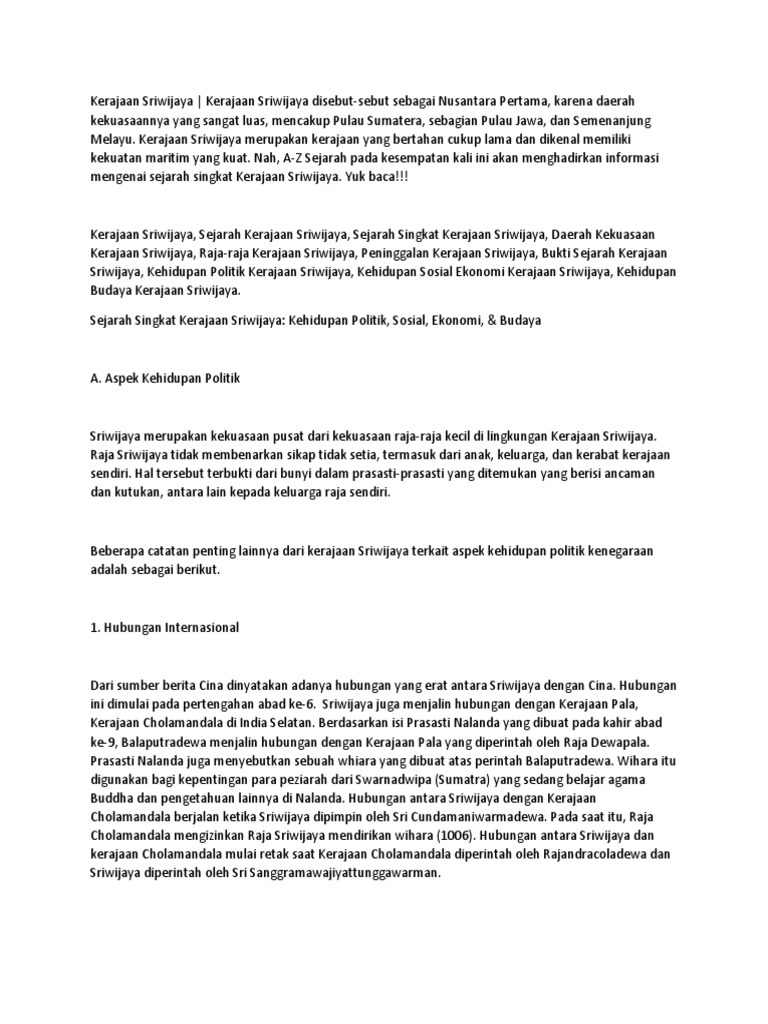 A-Z Sejarah: Sejarah Singkat Kerajaan Sriwijaya: Kehidupan Politik …