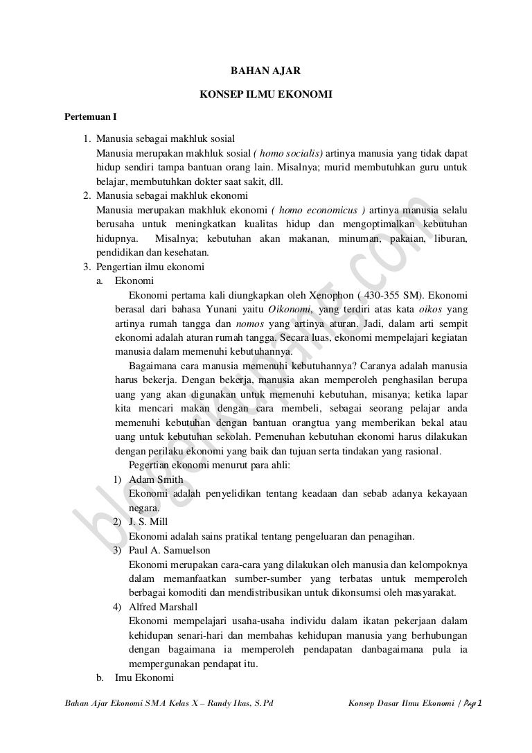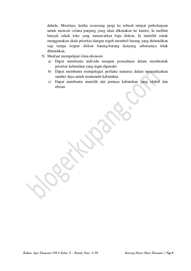 Contoh Soal Ekonomi Kelas X Kepingan 1 Konsep Dasar Ilmu Ekonomi …