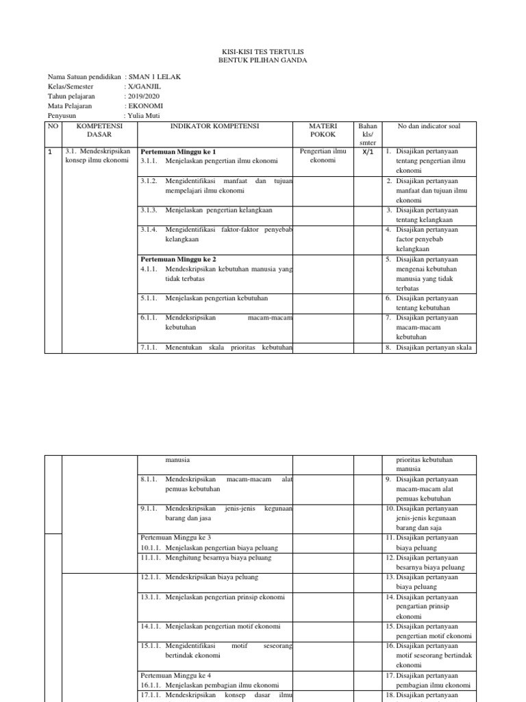 KISI-KISI SOAL EKONOMI KELAS X SEMESTER 1.docx
