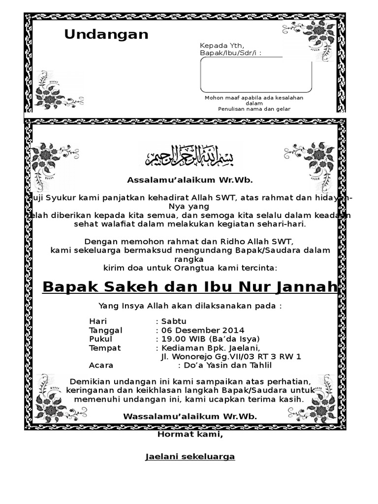 Download Contoh Surat Undangan Tahlilan Siap Edit - Gratisiana.Net