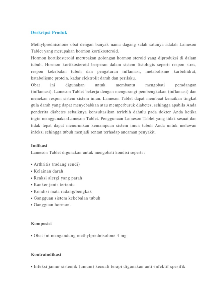 Lameson 4, 8, & 16 mg (Methylprednisolone) : Informasi Lengkap • Katamasa