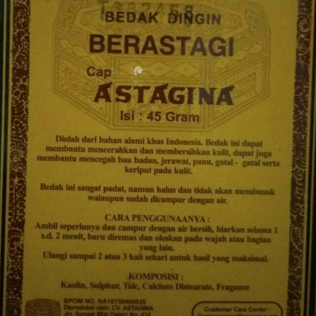 Bedak Dingin Berastagi Astagina, Kesehatan & Kecantikan, Kulit, Sabun & Tubuh di Carousell