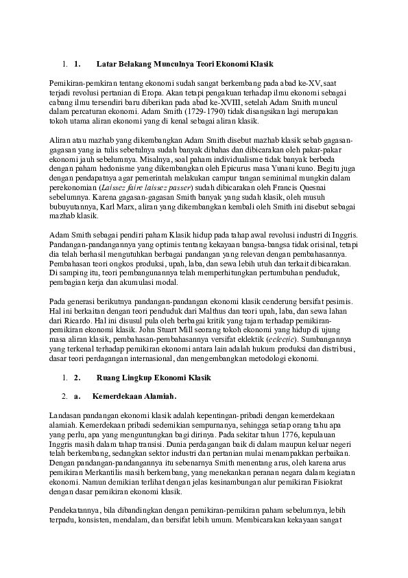 2.1. Bagaimana perkembangan teori ekonomi klasik