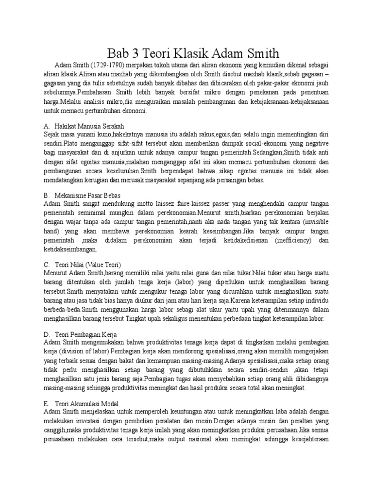 Adam Smith : Teori Ekonomi Klasik | amirullahweb