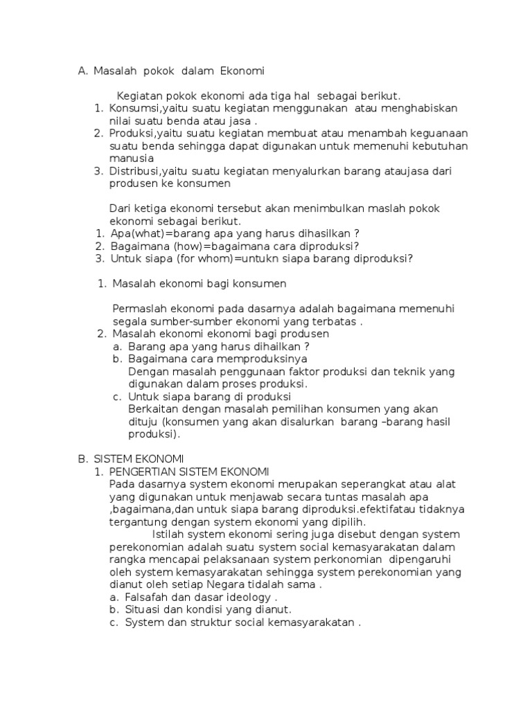 DOC) BAB 2 masalah ekonomi dalam sisitem ekonomi.docx | syifa …