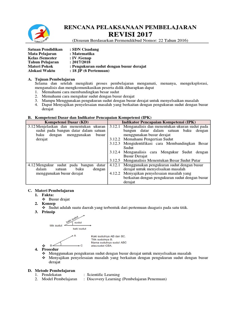Rpp Matematika Kelas 4 Sd Tentang Sudut – IlmuSosial.id