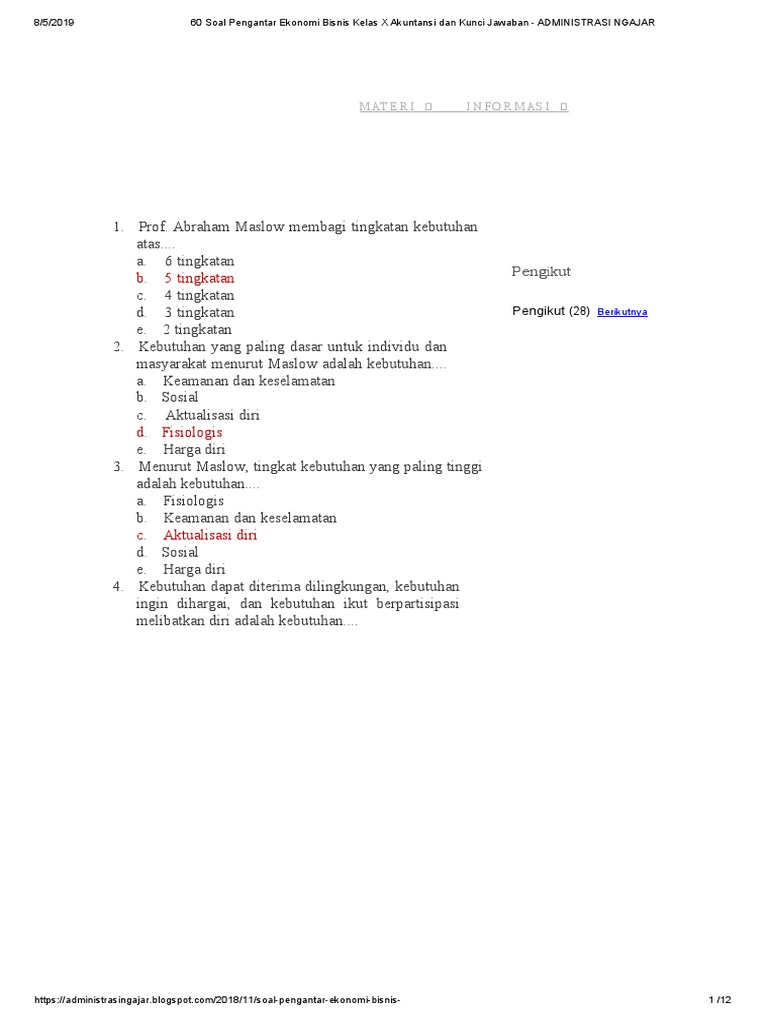 60 soal pengantar ekonomi bisnis kelas x akuntansi dan kunci jawaban …