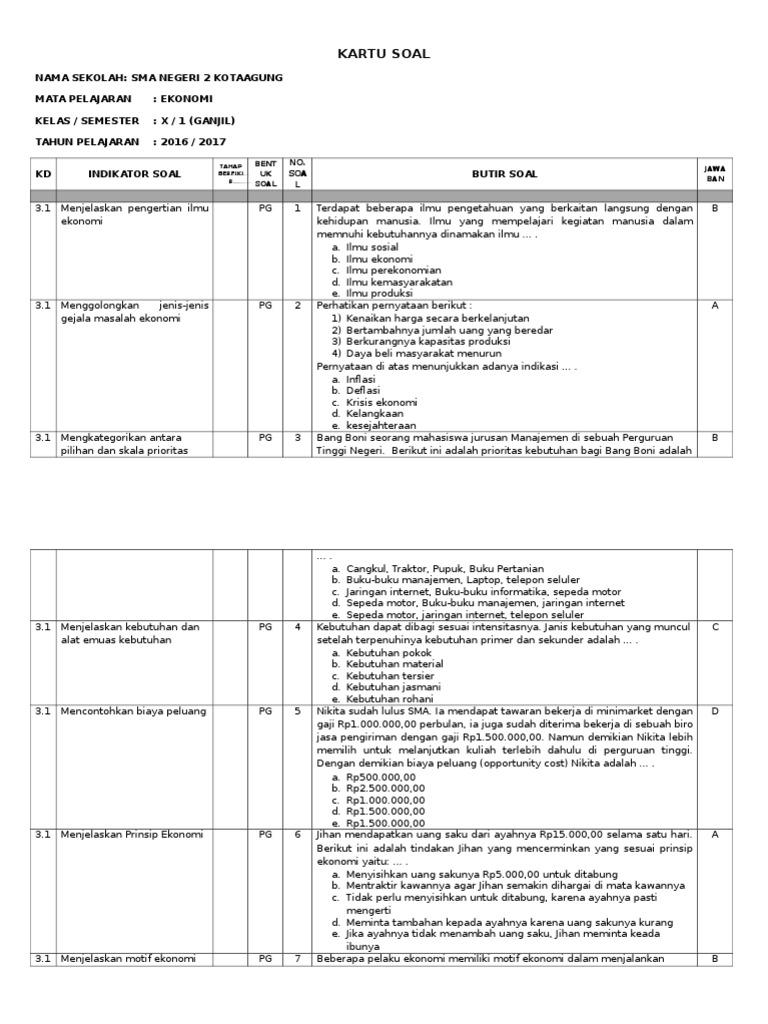 Contoh Soal Ekonomi kelas X Semester Ganjil Beserta Jawabannya …