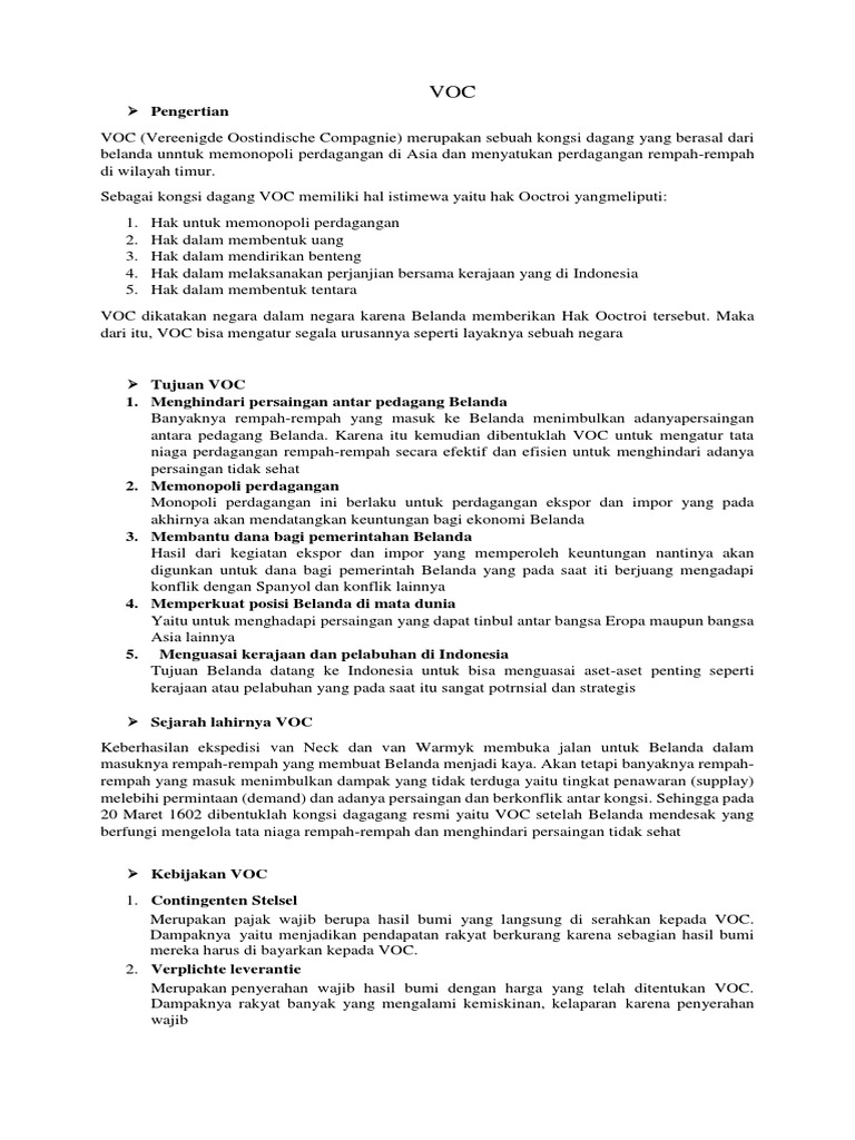 Sebutkan Hak Hak Istimewa Voc Yang Diberikan Oleh Pemerintah …