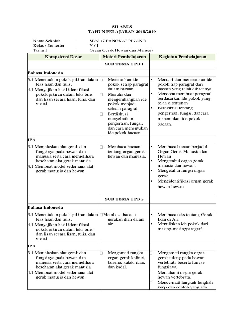 3. Silabus Kelas 5 Sem 1 K13 Revisi 2017