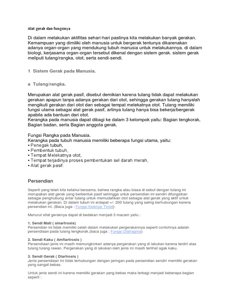 Alat Gerak Dan Fungsinya