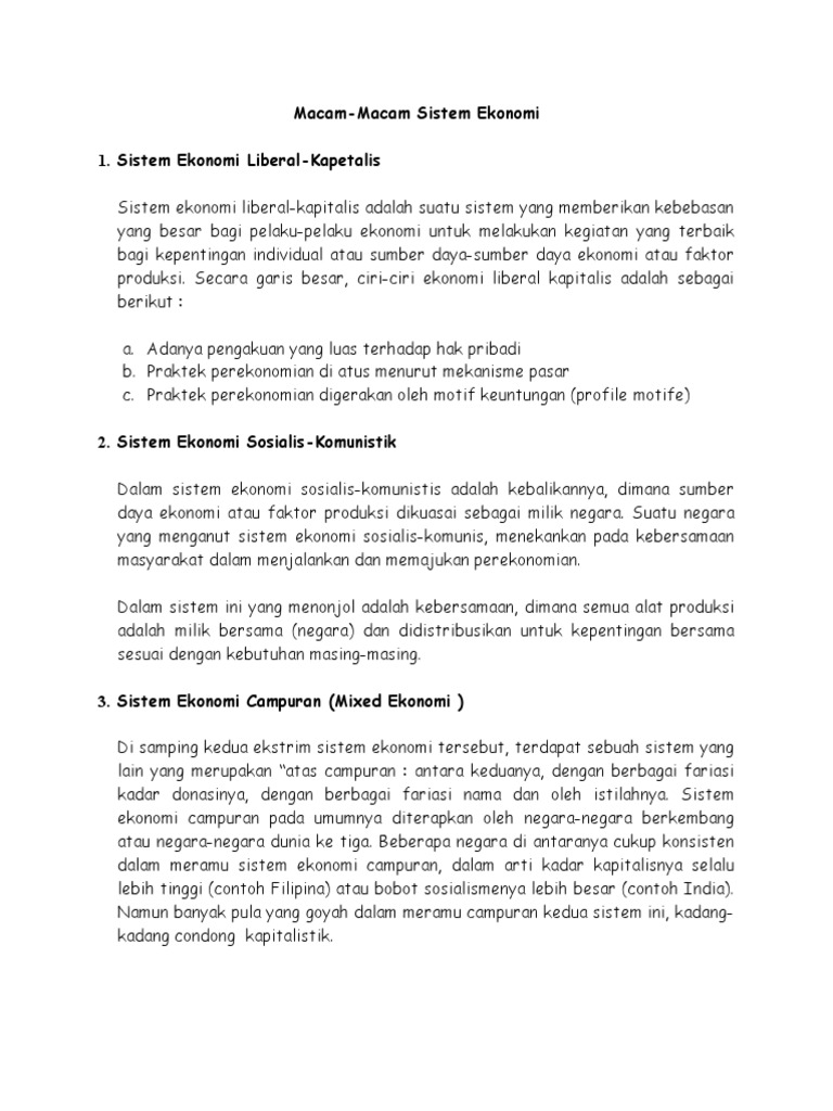 √ 32 Macam Sistem Ekonomi di Indonesia dan Negara Lain dan …