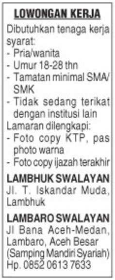 Lowongan Kerja Swalayan Lambhuk & Lambaro Aceh Besar - Karir Aceh
