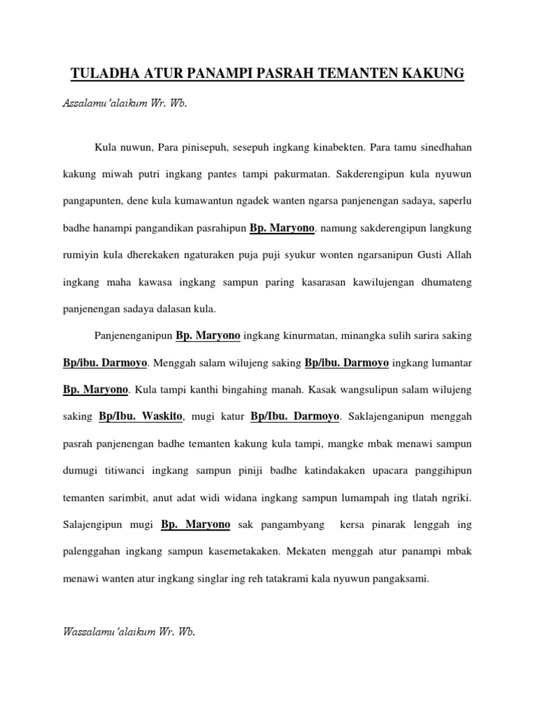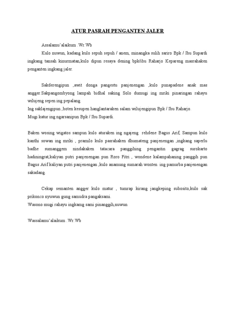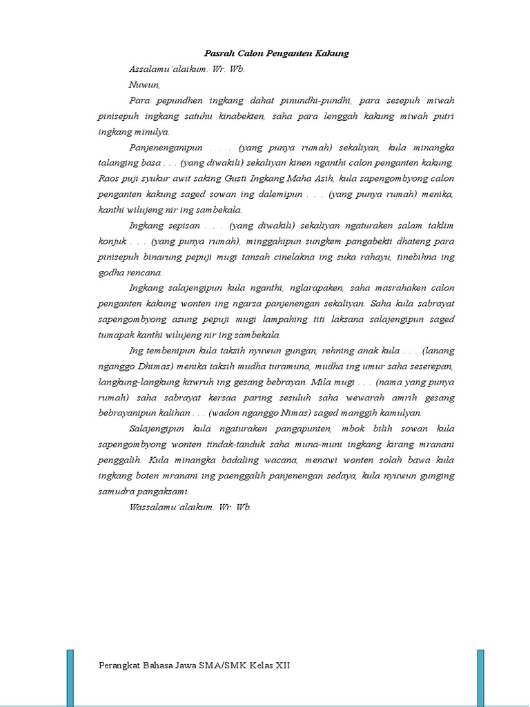 DOC) pidato bahasa jawa : pasrah temanten | Dyah Safira - Academia.edu