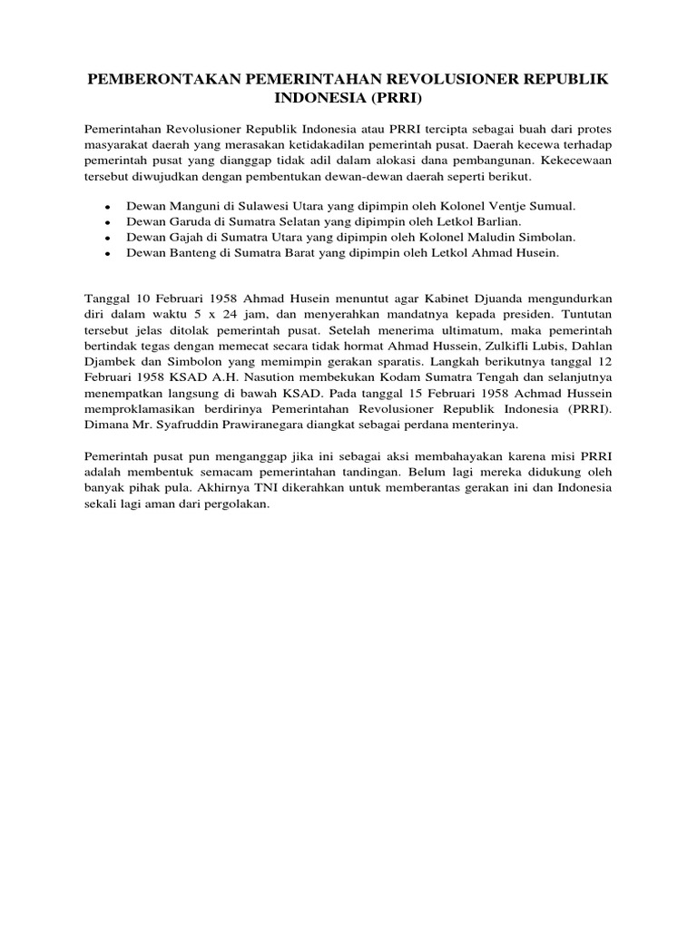 PEMBERONTAKAN PRRI (Pemerintahan Revolusioner Republik Indonesia …