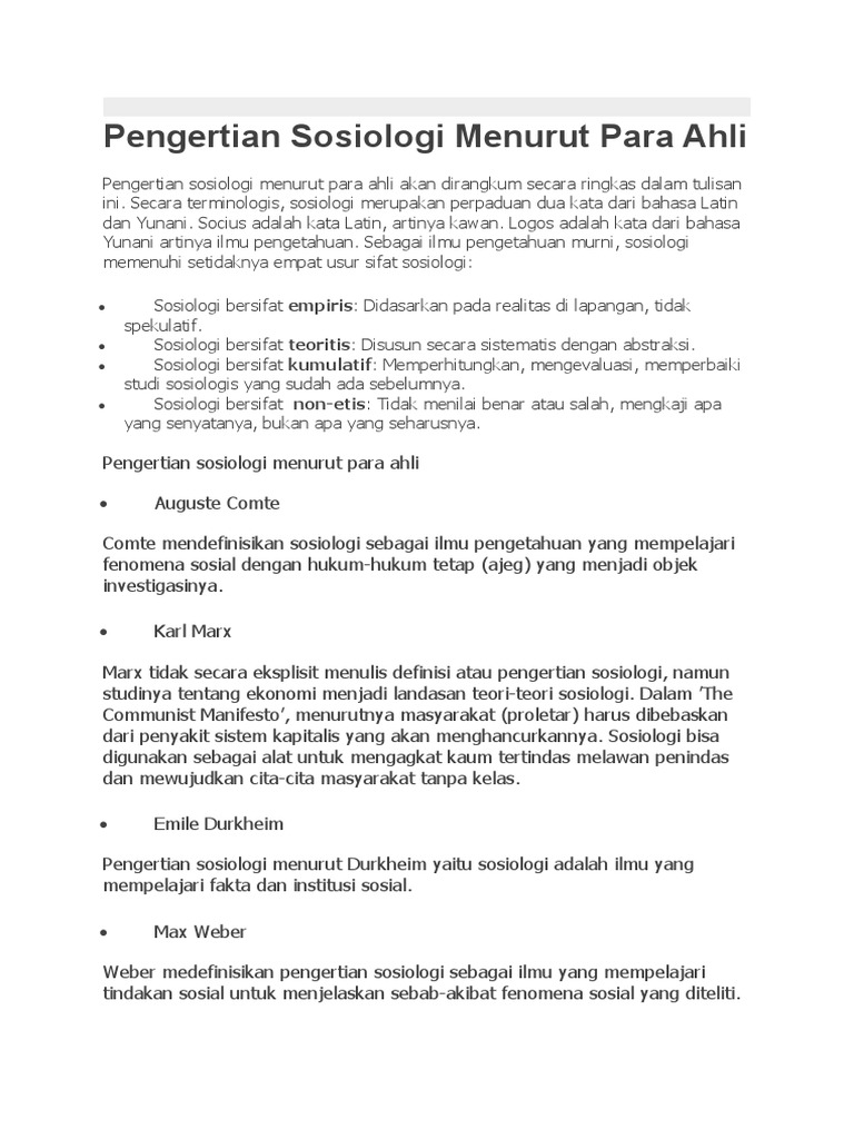 Pengertian Sosiologi Menurut Para Ahli - [PDF Document]