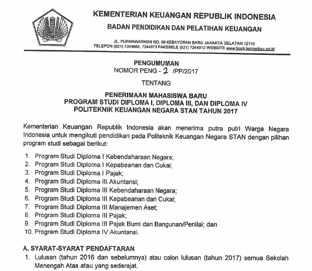 Update Pengumuman Terbaru PKN STAN Tahun 2017/2018 (Setelah Ralat …