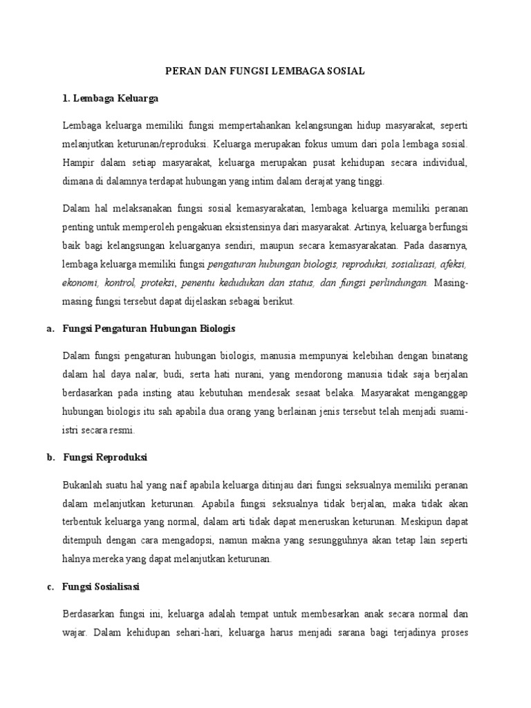 Peran dan fungsi lembaga keluarga, agama, ekonomi, pendidikan, budaya…