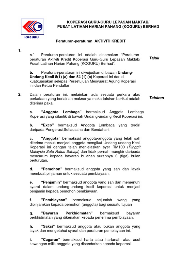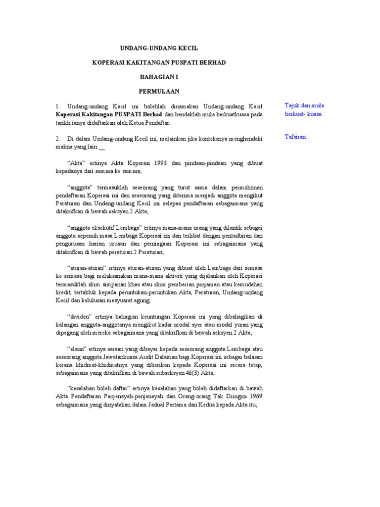 Undang-Undang Kecil Koperasi Kakitangan Puspati Berhad …