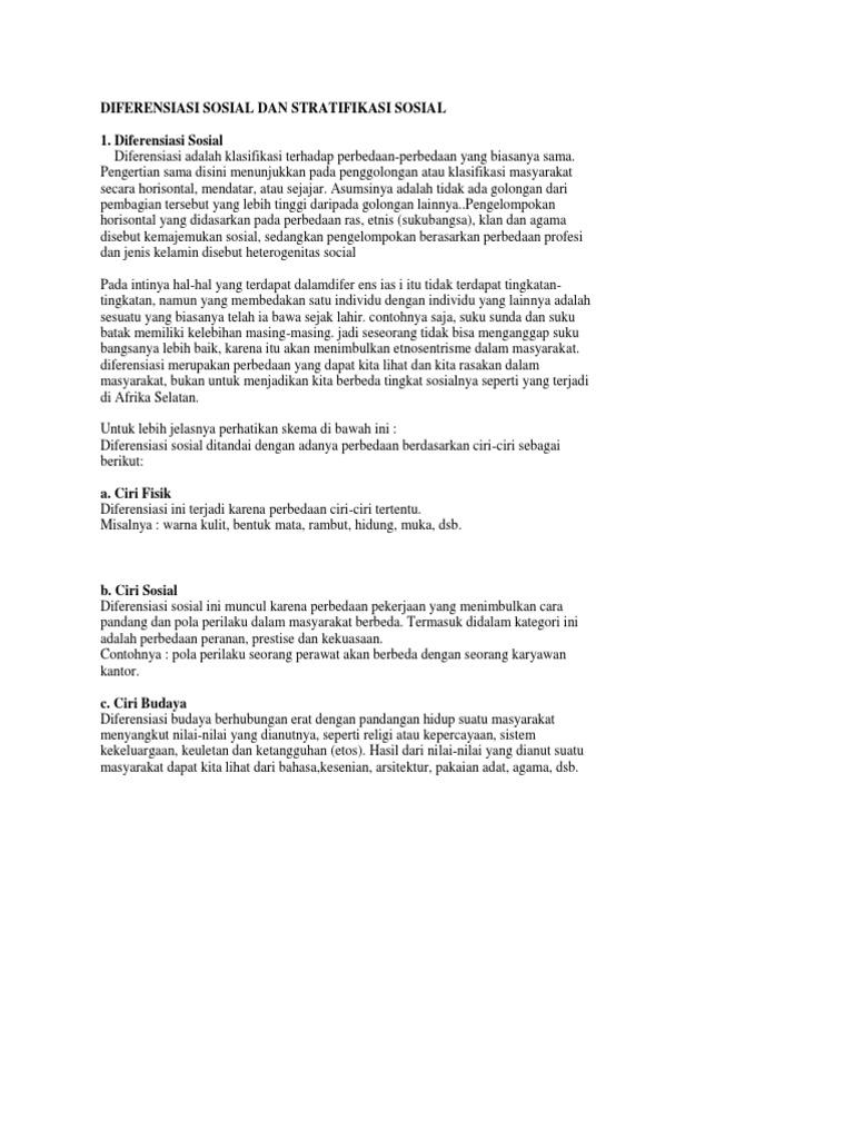 PENGERTIAN DEFERENSIASI SOSIAL,CIRI CIRI BESERTA BENTUKNYA …