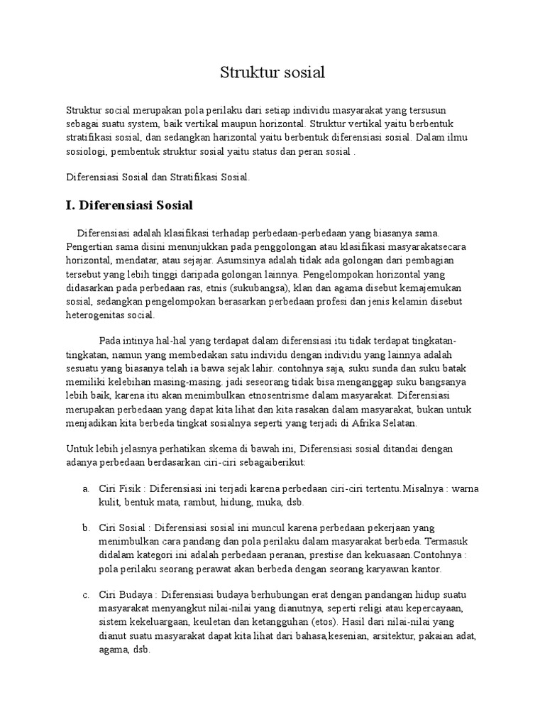 Belajar Online: PENGERTIAN STRUKTUR SOSIAL DAN DIFERENSIASI SOSIAL