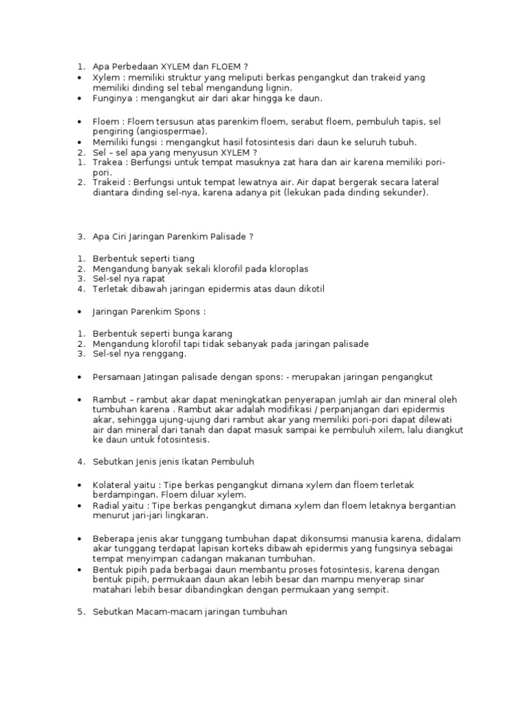Kumpulan Soal pelajaran 8: Contoh Soal Xilem Dan Floem