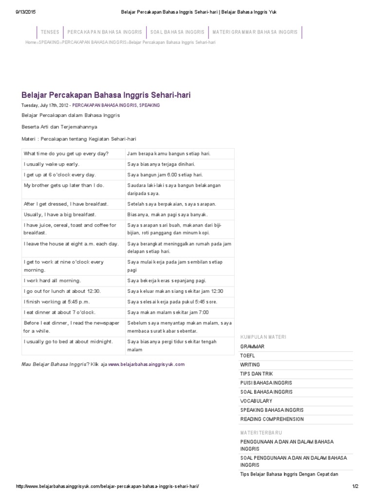 Download Percakapan Bahasa Inggris Sehari Hari dan Artinya Free …