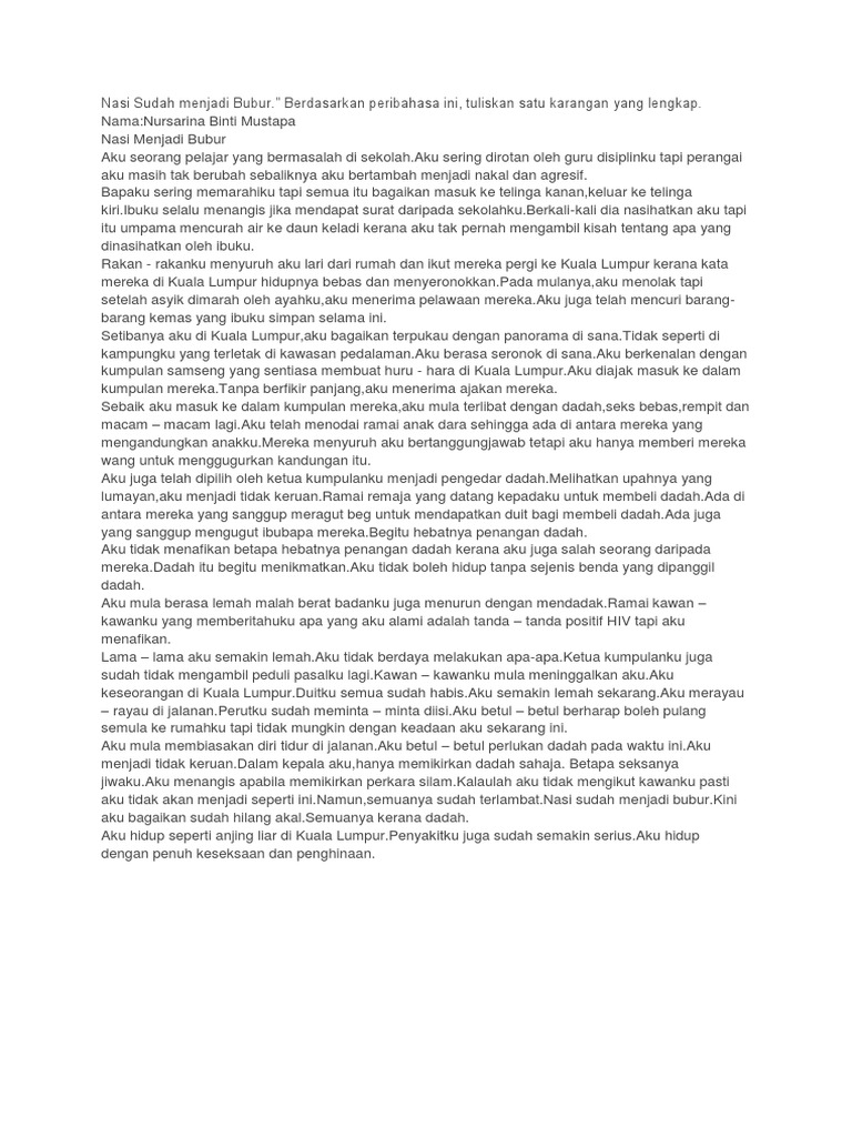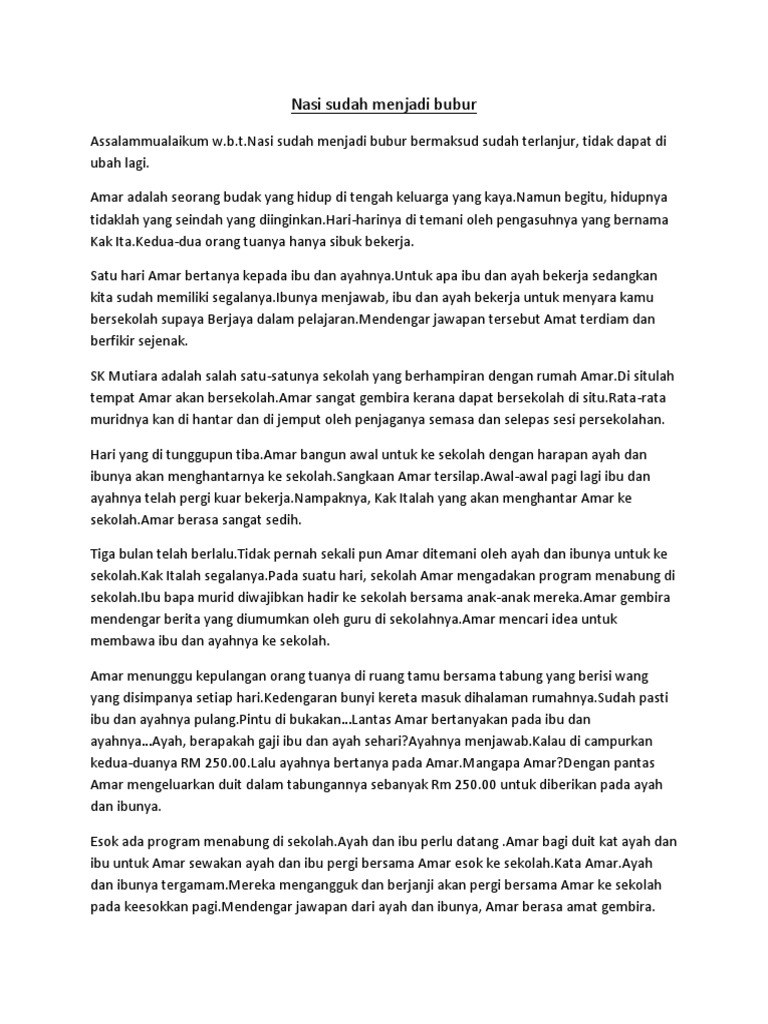 Contoh Karangan Peribahasa Nasi Sudah Menjadi Bubur