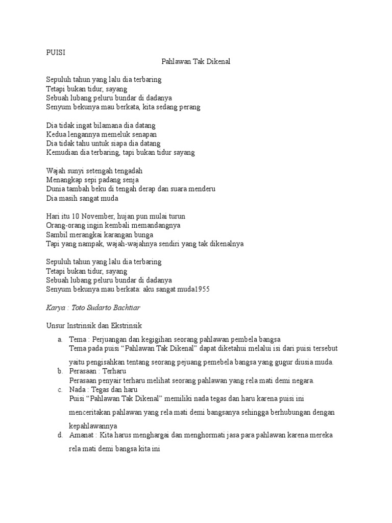 Refleksikan isi puisi “pahlawan tak dikenal” diatas! 1 bait 4 baris - Brainly.co.id
