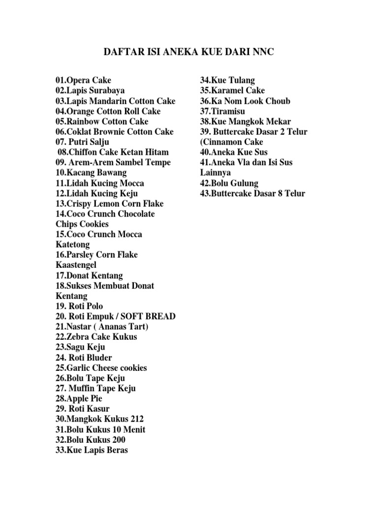 Daftar Isi Aneka Kue Dari Nnc