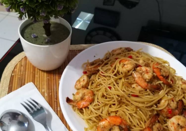 Resep Spaghetti Udang Aglio Olio oleh anis zuhaida - Cookpad