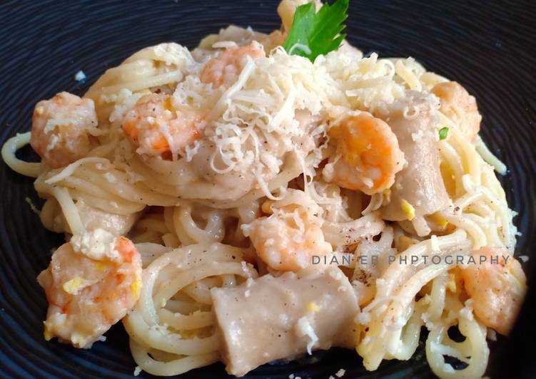 Resep Spaghetti Carbonara Sosis Udang oleh Dian Mavizsof - Cookpad