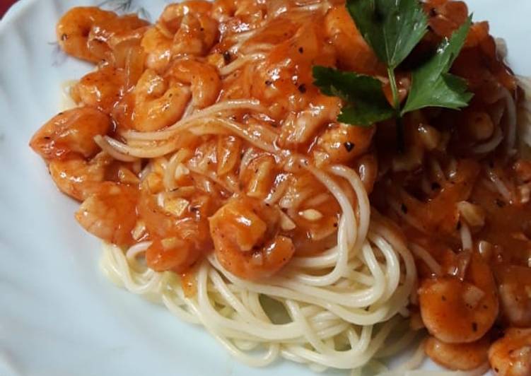 Resep Spaghetti Saus Udang Pedas oleh nChef Joy - Cookpad