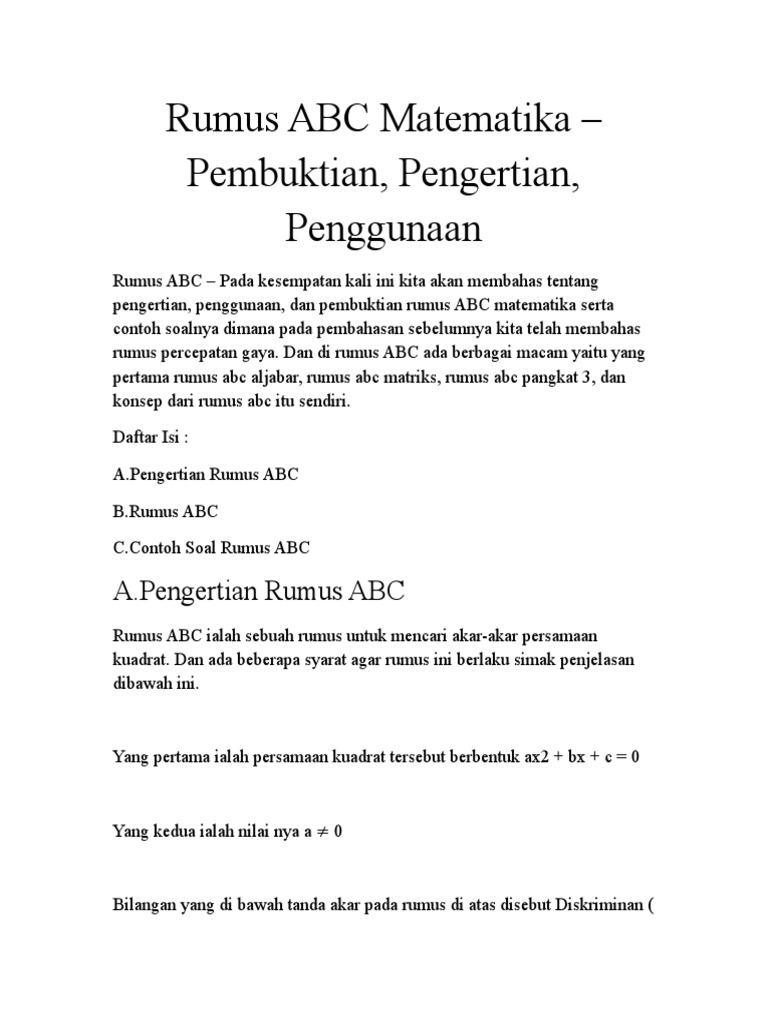 Contoh Soal Rumus Abc - Pengertian, Pembuktian, Pembahasan