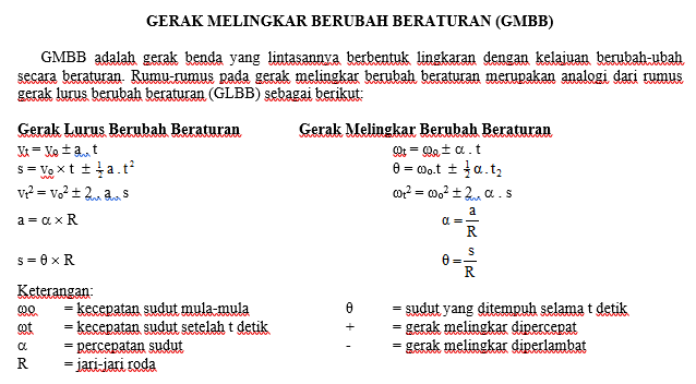 rumus - rumus GMBB (Gerak Melingkar Berubah Beraturan) - Brainly.co.id