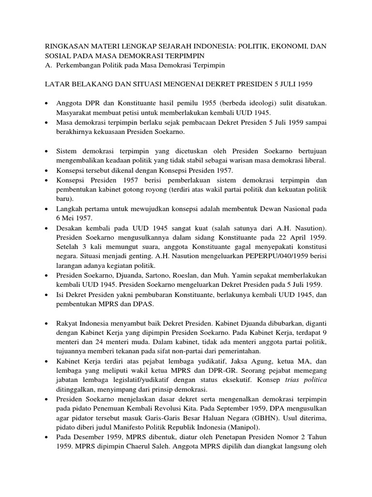 DOC) RANGKUMAN KEHIDUPAN POLITIK DAN EKONOMI PADA MASA DEMOKRASI …