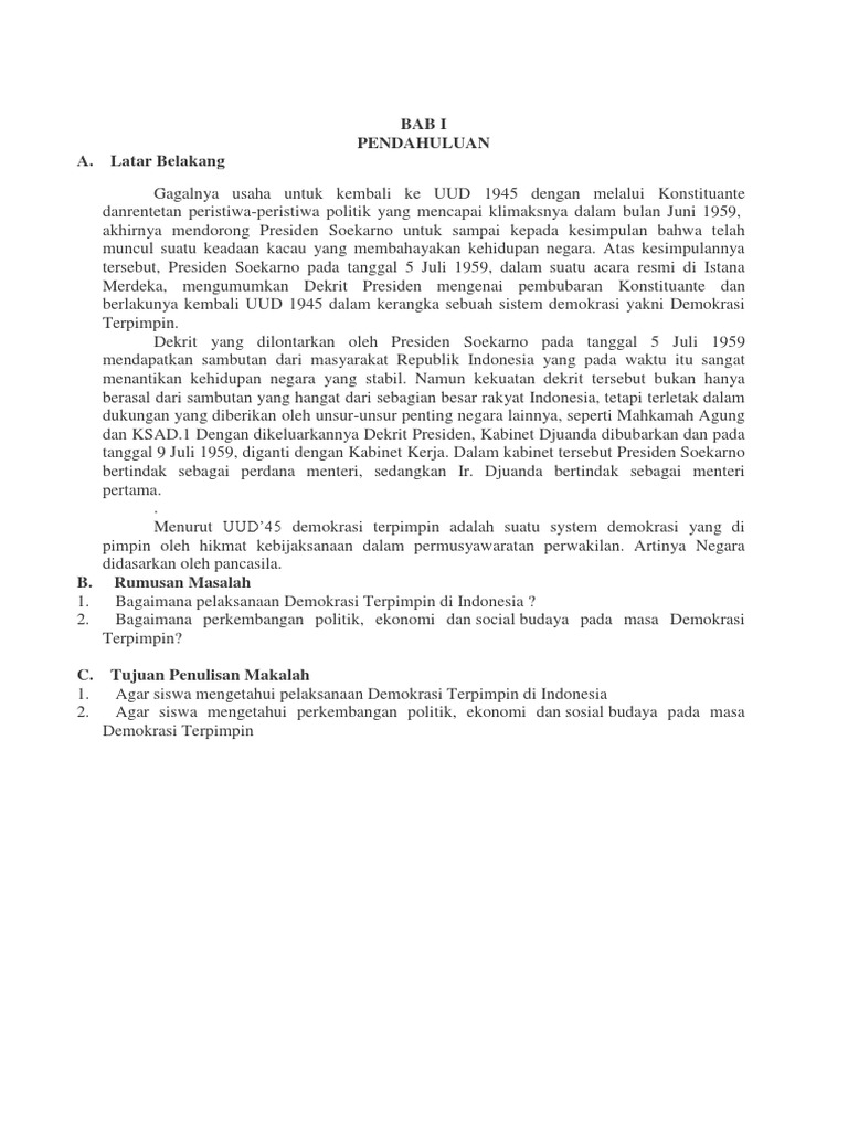 Pelaksanaan Demokrasi Terpimpin di Indonesia Pada 1959 - 1965 …