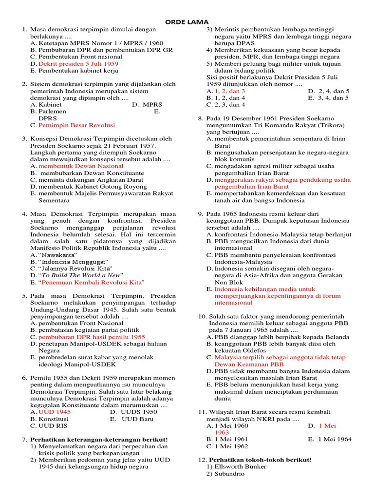 Soal UAS Sejarah Indonesia: Demokrasi Terpimpin Halaman all …