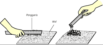 Sebuah penggaris plastik yang digosokkan pada kain wolakan …