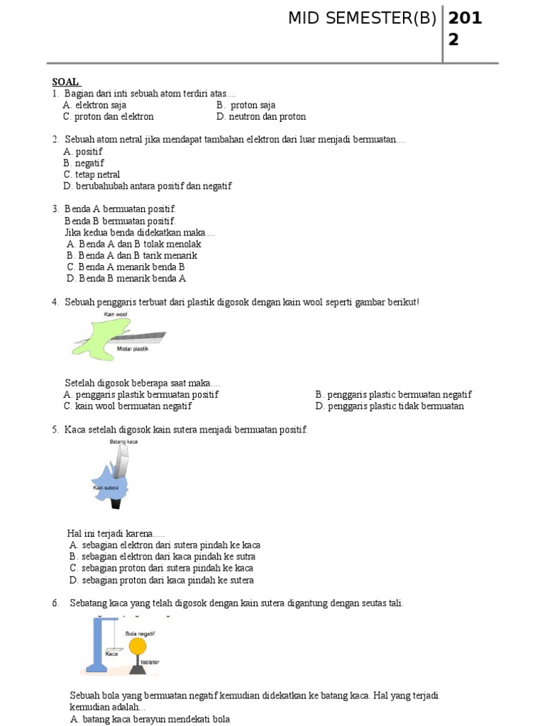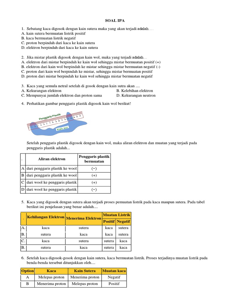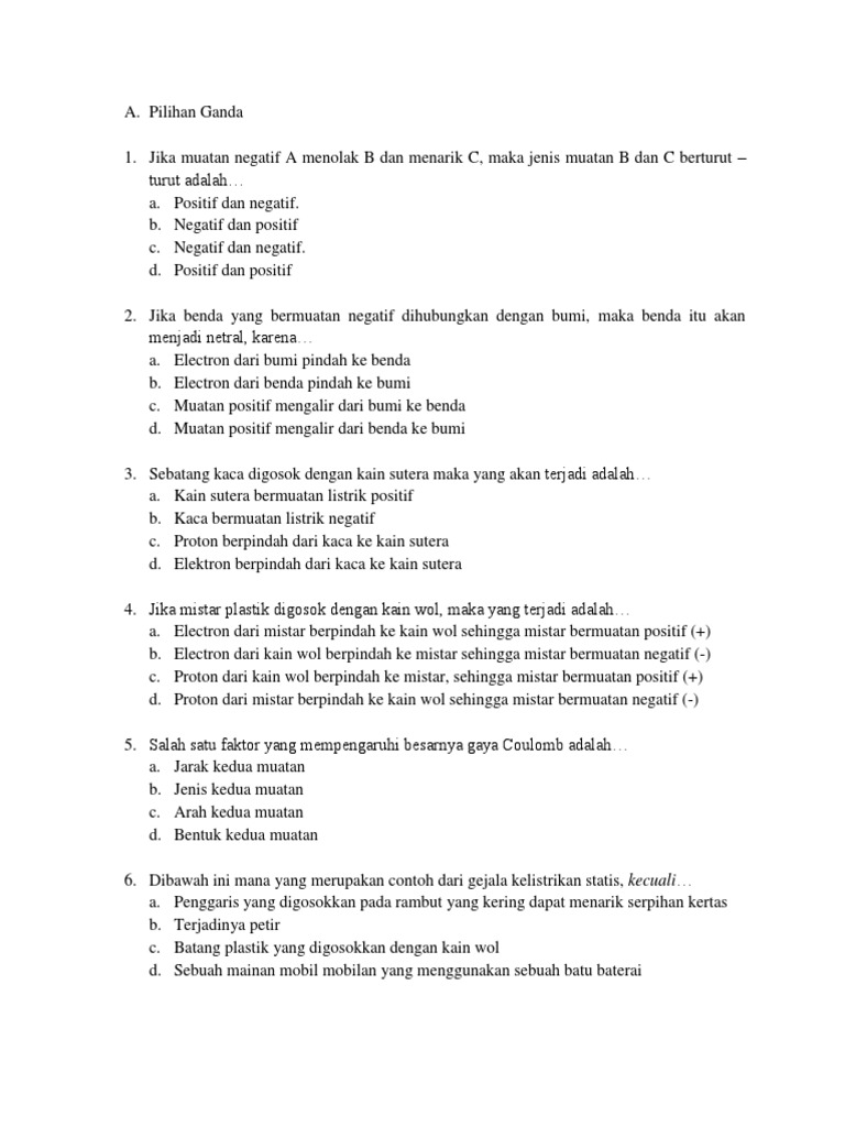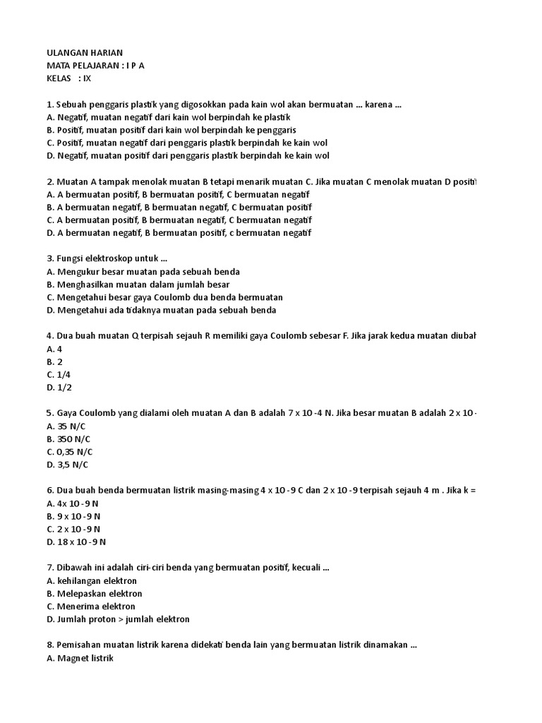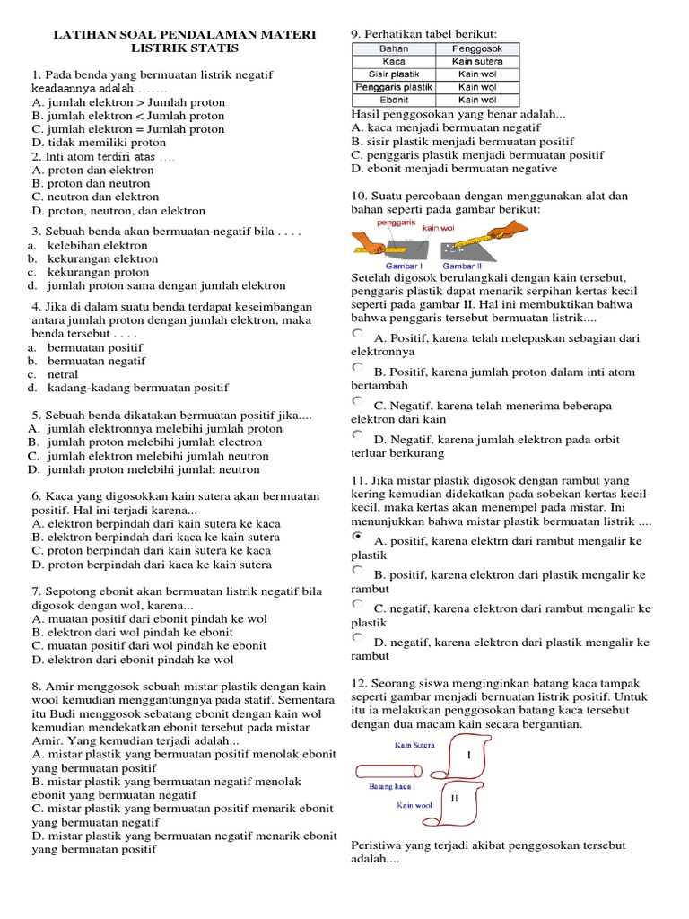 Latihan soal fisika kelas 7 materi listrik statis dan …