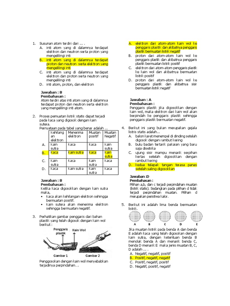 SMP kelas 9 - FISIKA BAB 1. LISTRIK STATISLatihan Soal PDF Free …