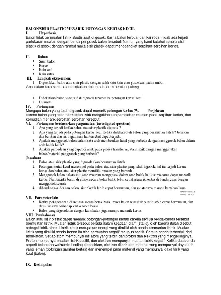 1. sebuah penggaris plastik yang digosokkan pada kain wol akan …