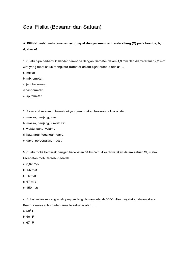 Soal Fisika Besaran Dan Satuan