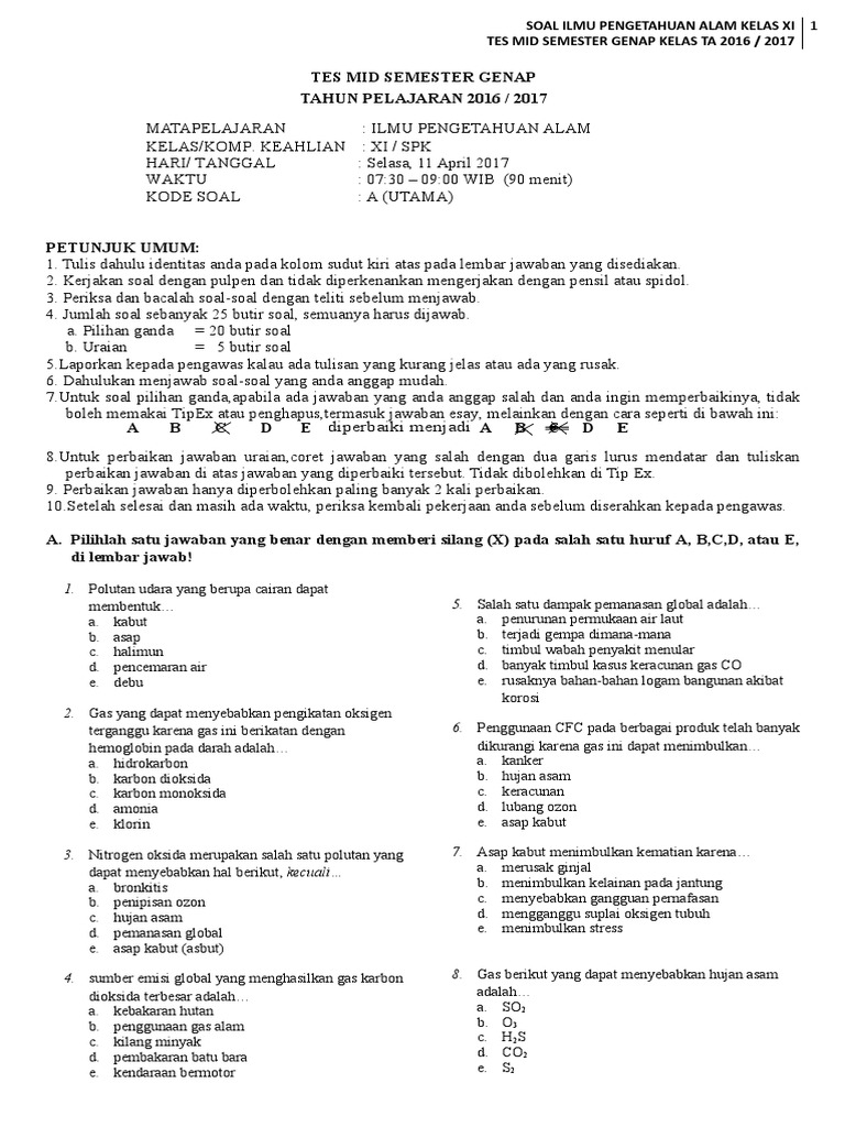 1.JELASKAN YANG DIMAKSUD PENCEMARAN UDARA! 2.JELASKAN PENYEBAB …