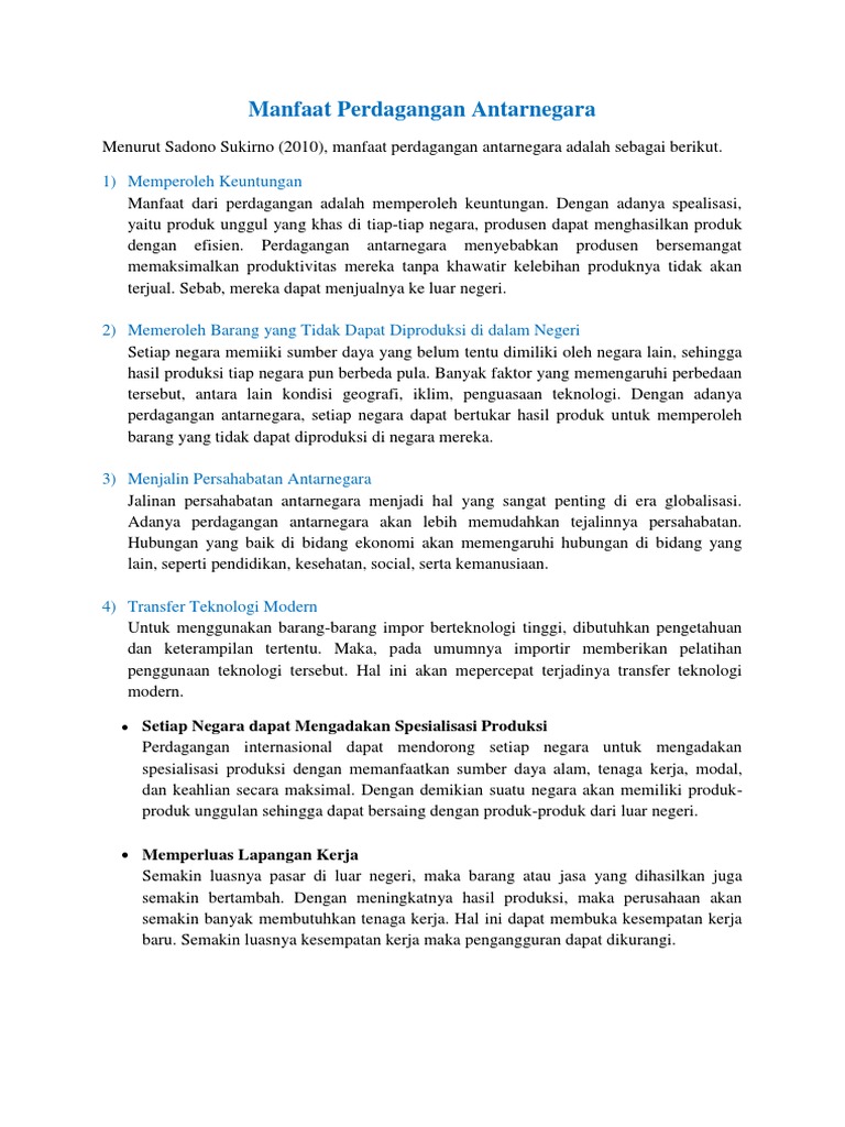 Apa Manfaat perdagangan internasional bagi perekonomian indonesia …