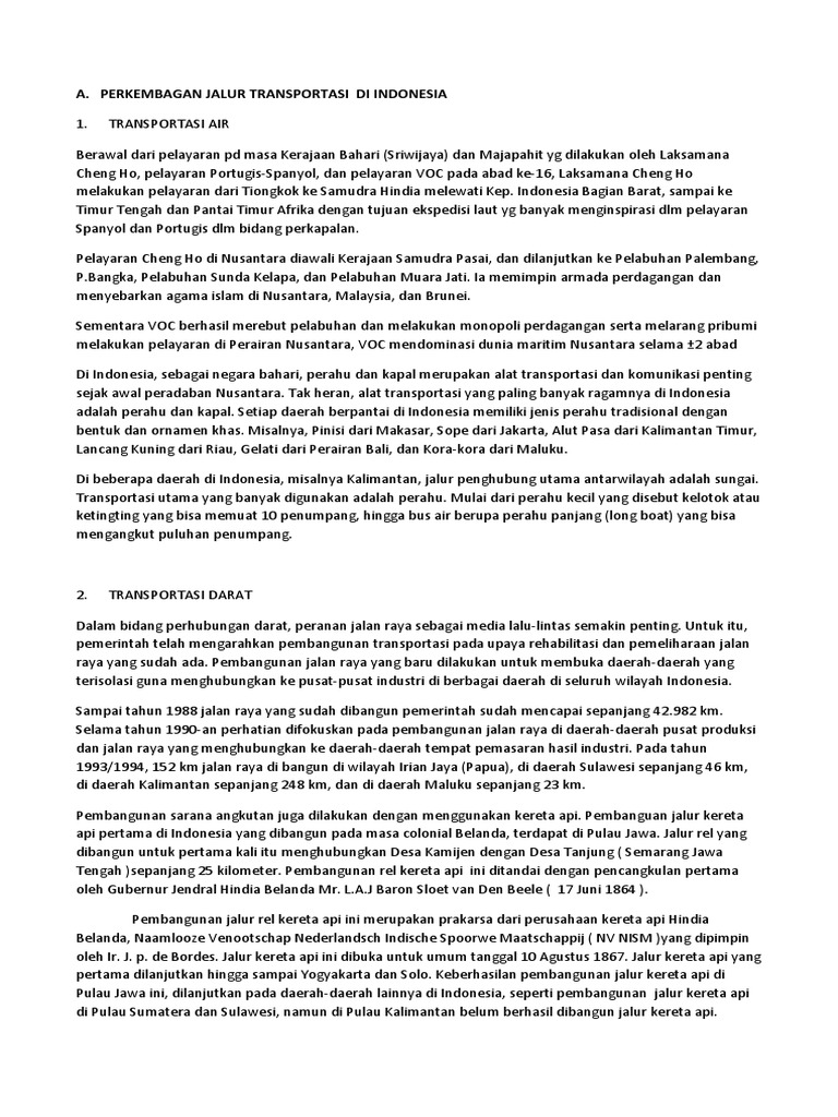 PERKEMBANGAN JALUR TRANSPORTASI DAN PERDAGANGAN DI INDONESIA by Zelviannisa Putri