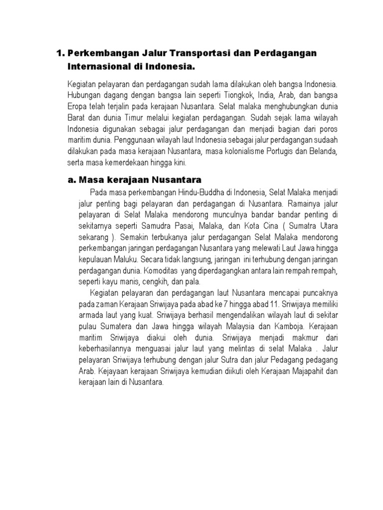 Sejarah Perkembangan Jalur Transportasi Dan Perdagangan Internasional Di Indonesia