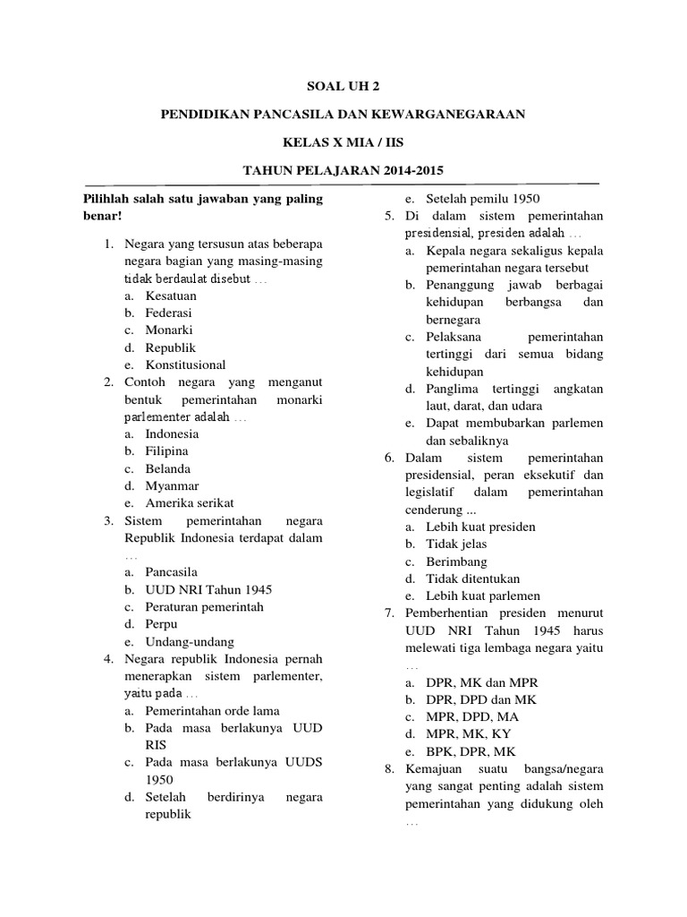 50 Soal Sejarah Sistem Pemerintahan Negara Indonesia, Jawaban …