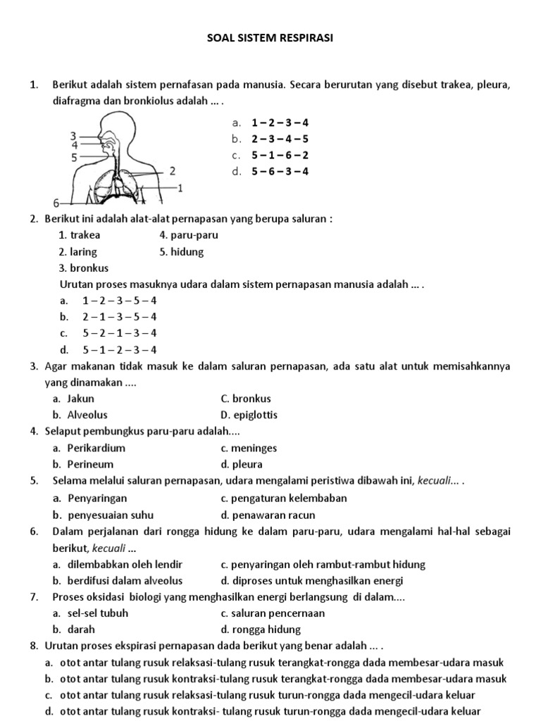 Soal Biologi : Sistem Pernapasan Manusia – Hewan & Jawaban - Muttaqin id