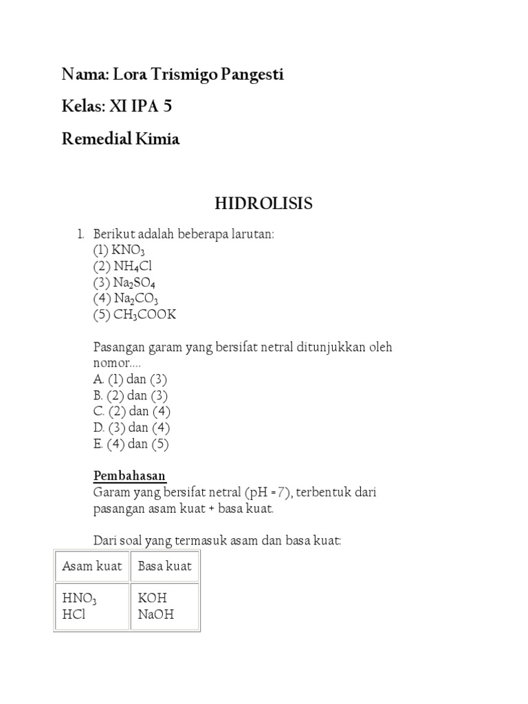 Latihan Soal Dan Pembahasan HIDROLISIS